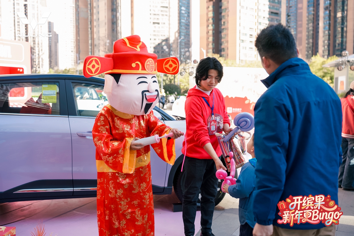 除了欢声笑语的新春互动游戏,还有财神爷给小朋友们做造型气球送祝福,随手一拍就是朋友圈大片,缤果的颜值搭配坚果的美味,今天又是被五菱缤果拿捏的一天。