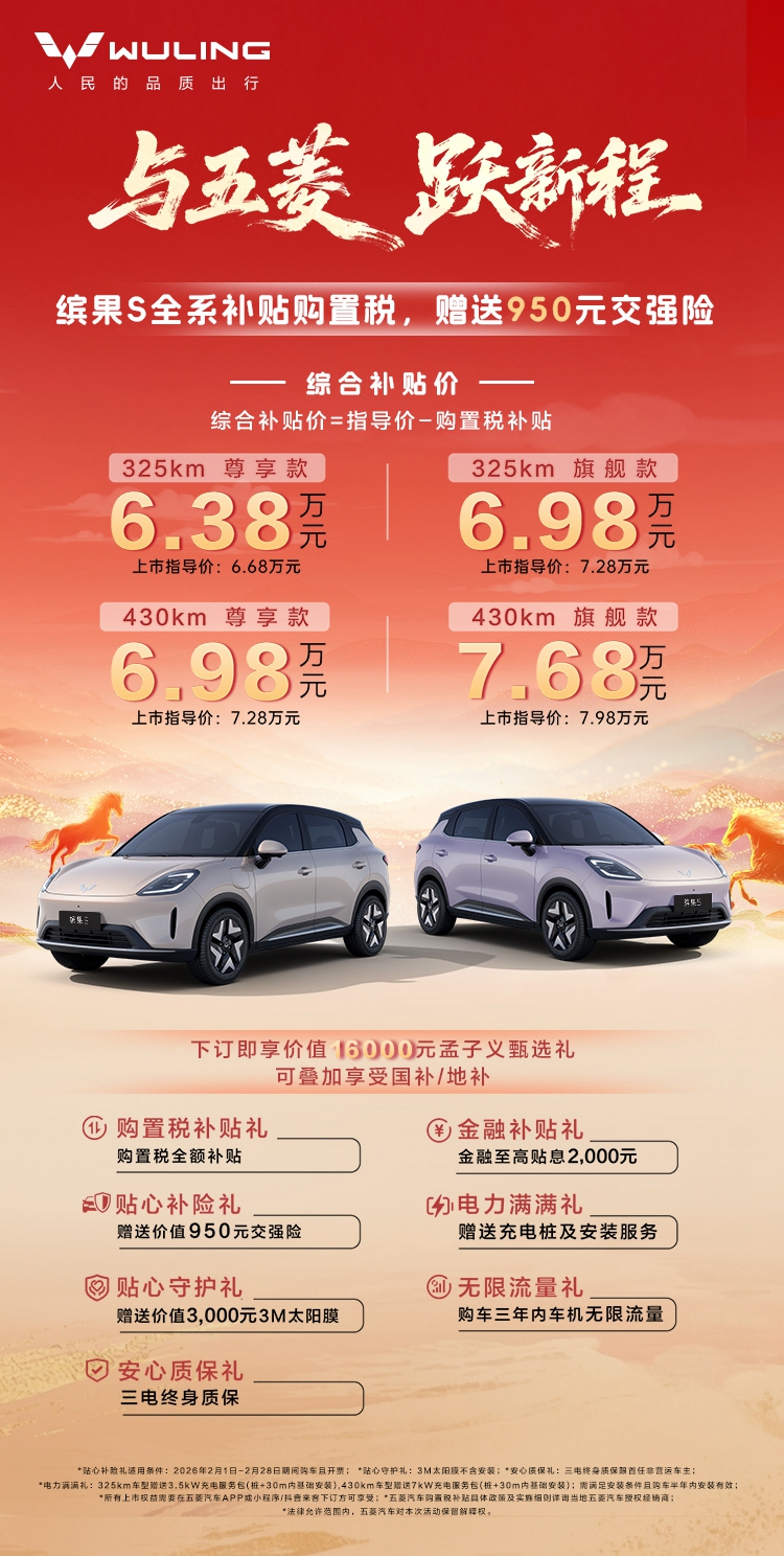值此新年佳节,缤果家族购车礼遇重磅上线,购买五菱缤果、缤果S立享购置税全额补贴、交强险免费赠送等多重福利,五菱官方直播间购车更有机会赢取良品铺子礼盒。速来加入缤果大家庭,开启高质感缤纷出行新生活,让这个新年开缤果更Bingo!