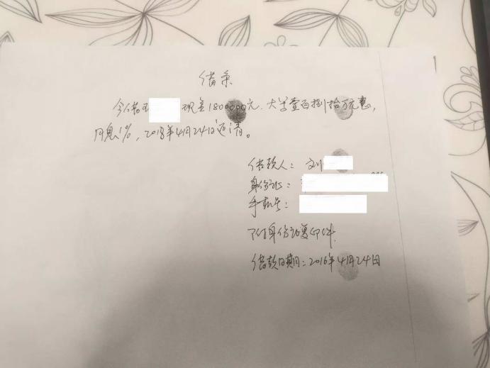 16年借款凭据 图一 (刘先生提供)