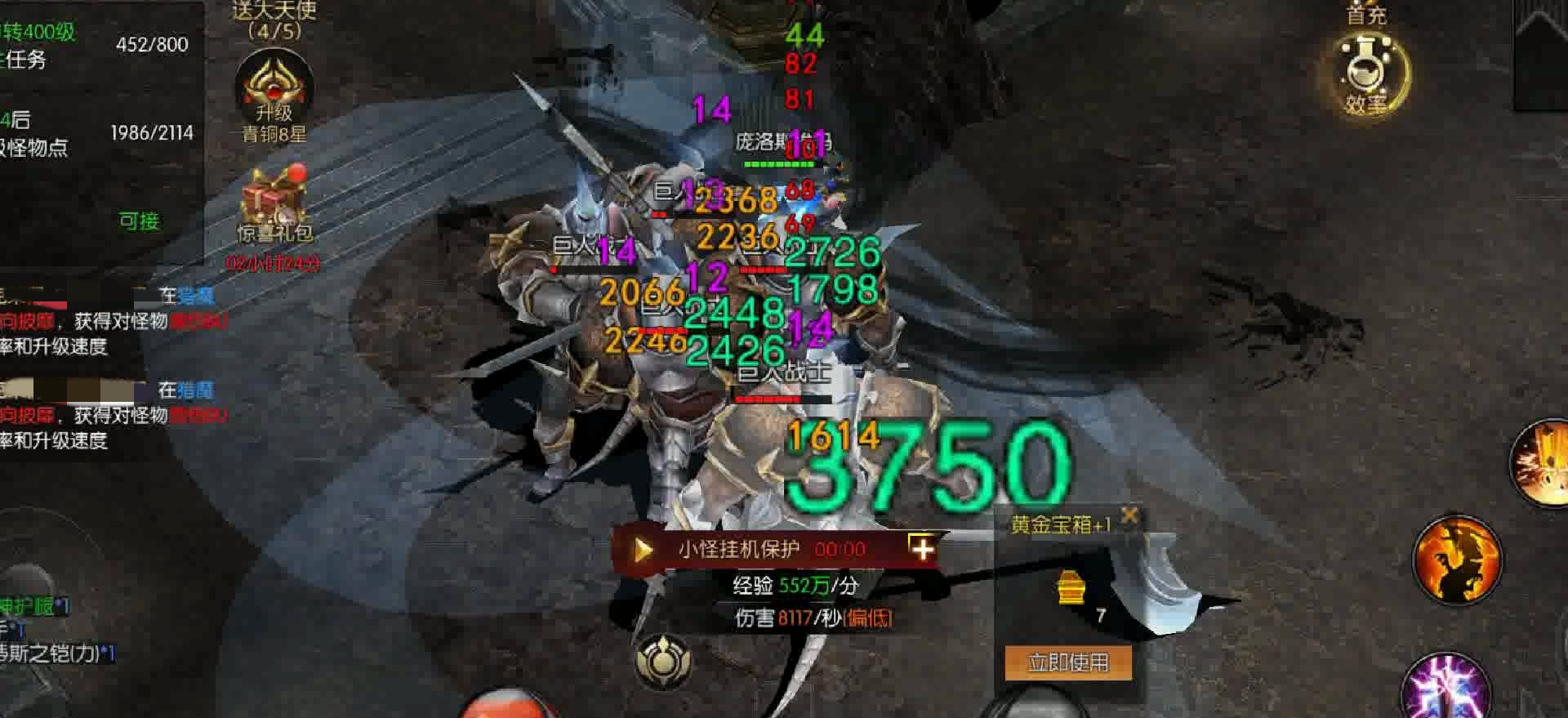挂机保护:开启挂机保护避免死亡掉落,贵重物品存仓库。