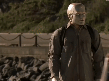 然而,你看到的还只是人形机器人的“原始人”形态,未来的机器人一定是这样的——它们自由穿梭在人群中,真假难辨,也许是和你同乘一座电梯的帅哥,也可能是在小区遛狗的美女……