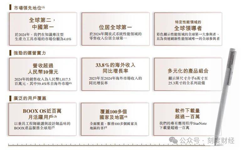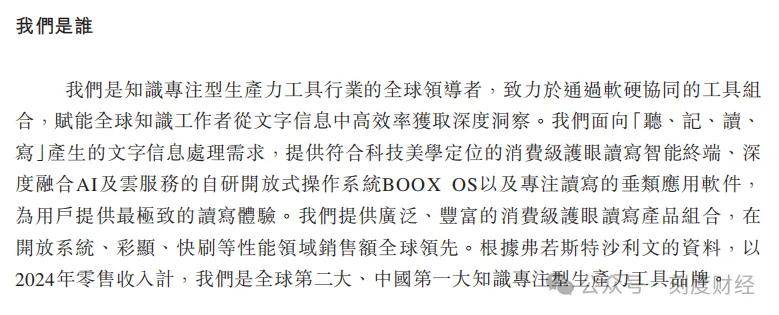 据弗若斯特沙利文数据,2024年以零售收入计,文石是全球第二大、中国第一大知识专注型生产力工具品牌,开放系统设备、彩色显示设备销量均位列全球第一,甚至超过Kobo、索尼等国际巨头。