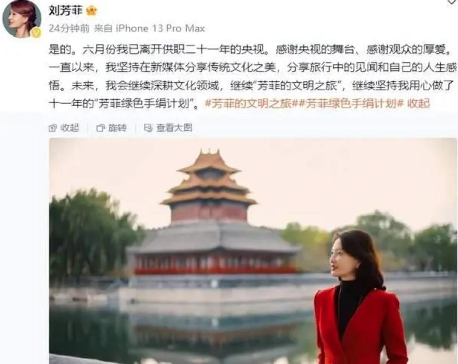 2023年10月初,网上突然传出消息,说刘芳菲已经从央视离职。