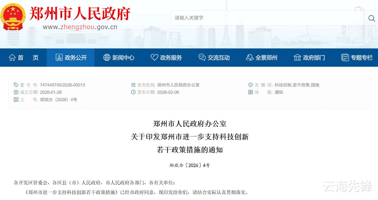近日,郑州市印发《郑州市进一步支持科技创新若干政策措施》,自2026年2月1日起施行,有效期至2028年1月31日。该政策聚焦培育创新主体、加大研发投入、支持创新平台建设、加强关键技术研发、完善成果转化机制、推动科技人才创新、优化创新生态等七大方面,推出24条具体举措。