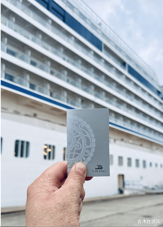 从德国乘机空降意大利罗马机场。走出机场出口,@青木在德国 就受到维京工作人员的迎接。训练有素的司机大叔用奔驰“保姆车”把我送到维京维斯塔号下。通过安检,再办完入住手续后,我得到一张“维京卡”,上面有门牌号,入住日期等信息。工作人员叮嘱,“维京卡”必须随带身上。它就是“船民”的身份证,是出入各种场合的通行证,也保证邮轮的安全。