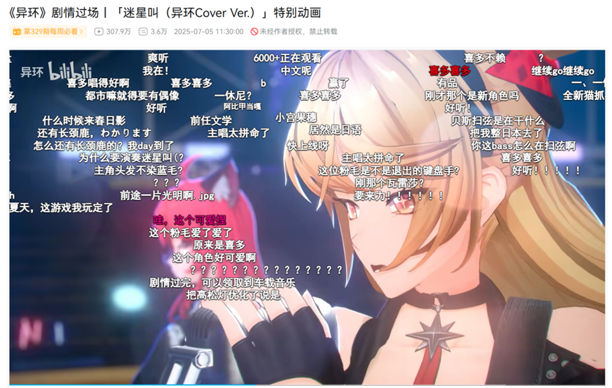 或者之前测试期间已经放出融合了Mygo/Girls Band Cry/孤独摇滚的剧情过场特别动画「迷星叫(异环Cover Ver.)」,都能明显感受到制作上对这条路线倾注的热情和可观的执行力。