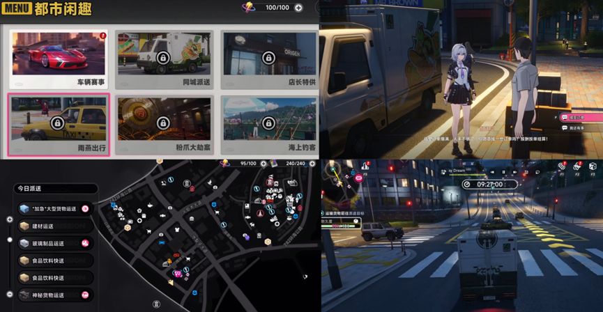 《异环》果断将打街机、钓鱼、多人搓麻将等大量休闲内容整合成了都市大亨体系内的“都市闲趣”功能,集合了包括送快递、开出租、都市赛车竞速等令人眼花缭乱的小游戏玩法,很多都是三测新增的。