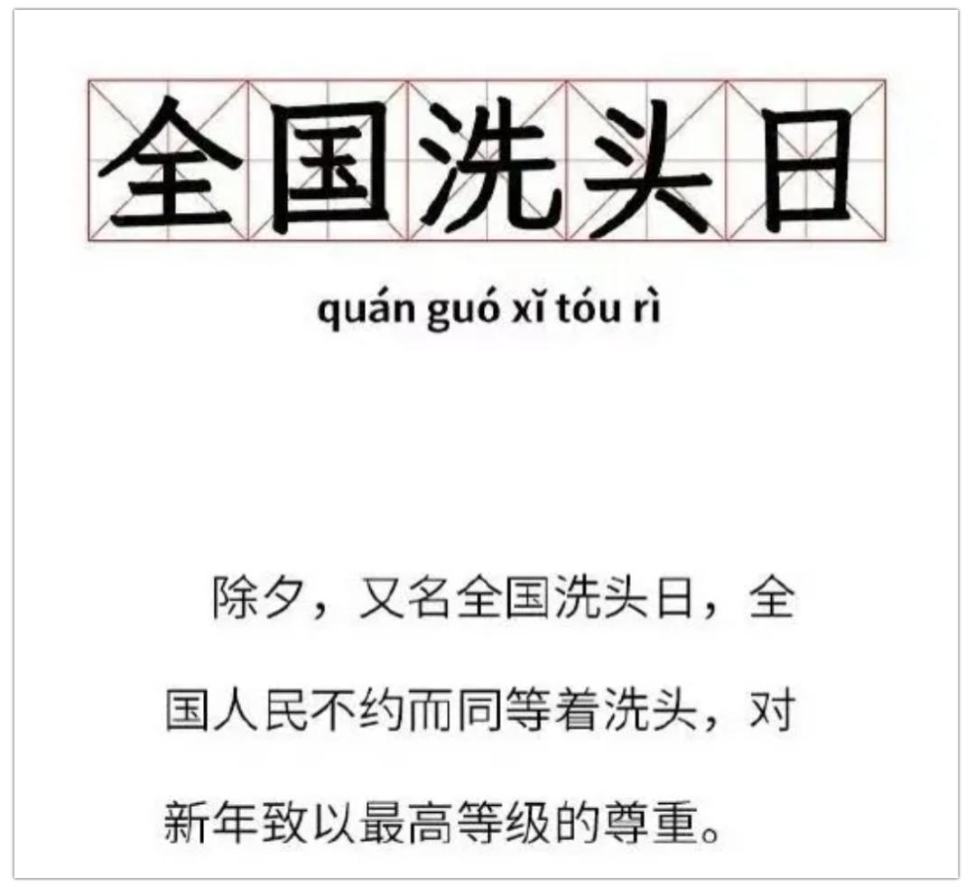 除夕洗头辞旧迎新,因此除夕又被戏称为“全国洗头日”。