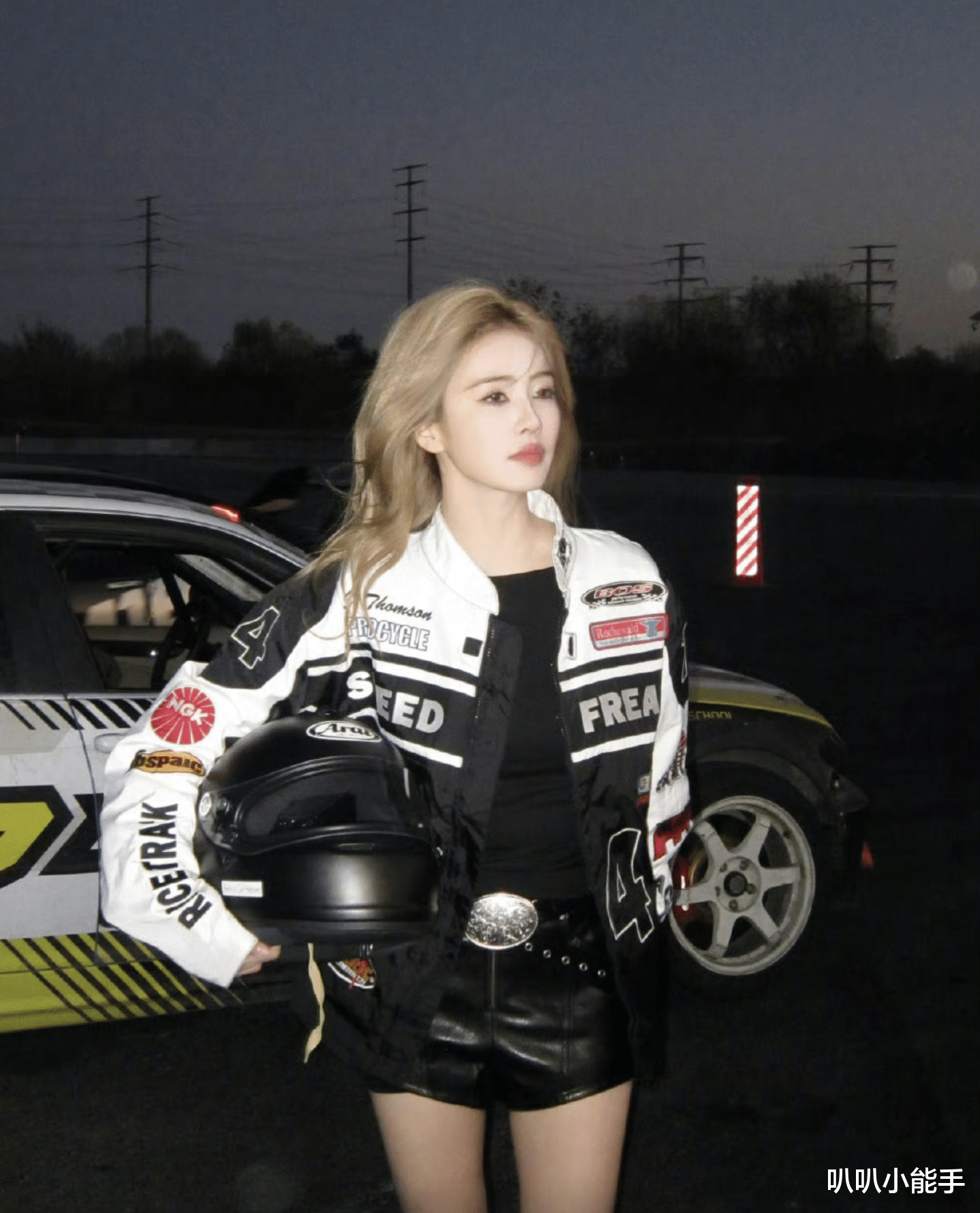 白鹿在北京零下天气里学赛车,直接把“飒”字刻在了脸上。她顶着一头浅金色卷发,穿着黑白赛车服,抱着头盔站在夜色里的照片一出,网友们直接炸锅:“这姐是来飙车的还是来拍大片的?”