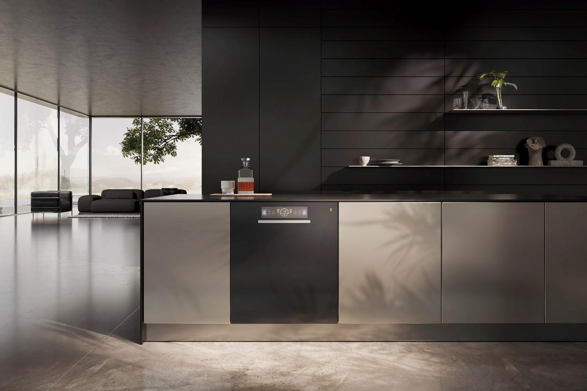 在门板设计上,采用无把手的设计让洗碗机完美融入厨房设计,浑然一体,并且门板外观根据厨房风格随心定制。