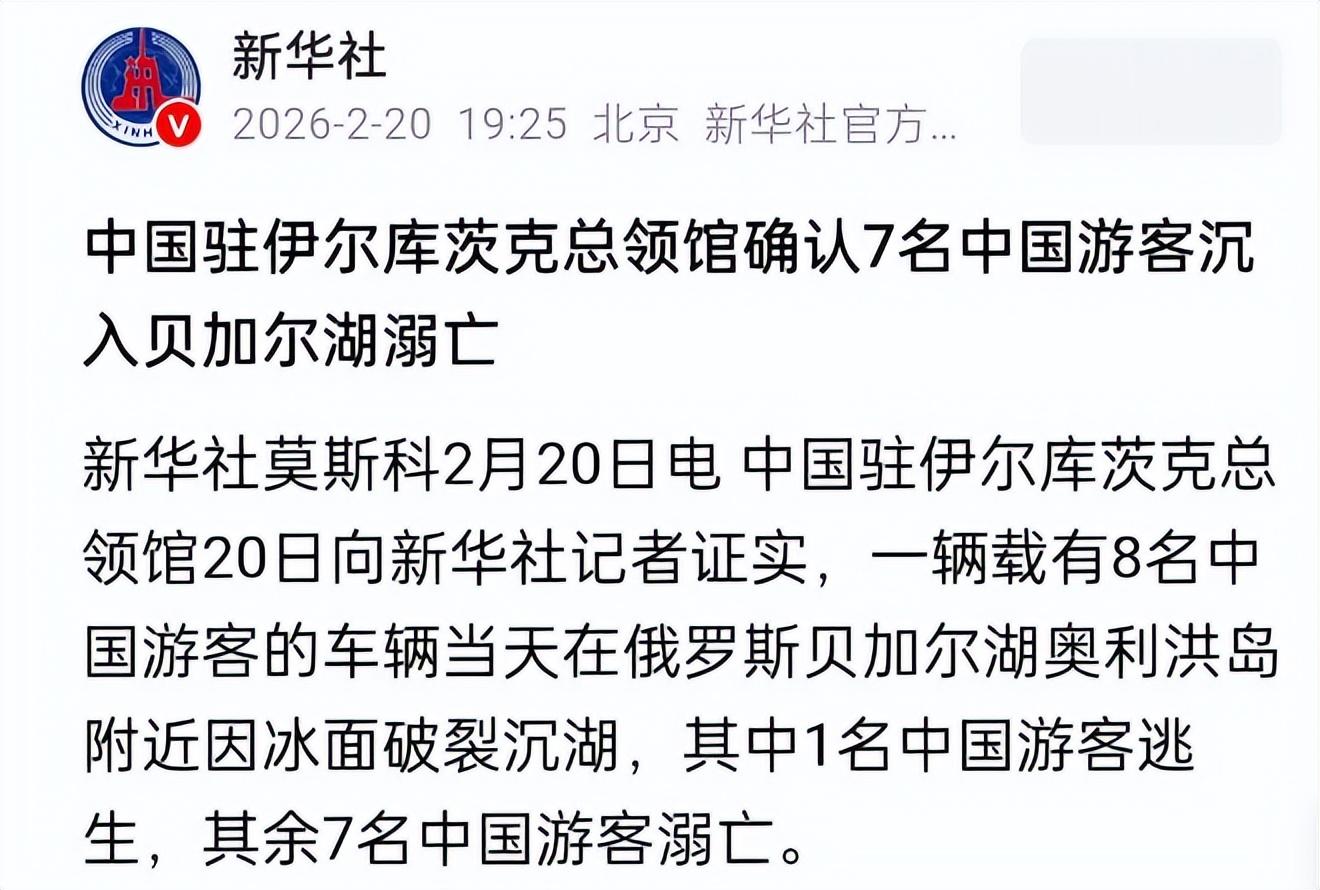 2026年2月20日,一则噩耗从俄罗斯传来,瞬间刷屏了全网,让无数人揪心不已。当天,在贝加尔湖奥利洪岛“三兄弟岩”附近,一辆载有8名中国游客和1名俄罗斯司机的UAZ越野车,正行驶在看似坚固的冰面上,谁曾想,脚下的冰层突然发生破裂,毫无预兆地出现一道巨大的冰窟,车辆来不及反应,瞬间坠入冰冷刺骨的湖水中,转瞬之间就被湖水吞没。