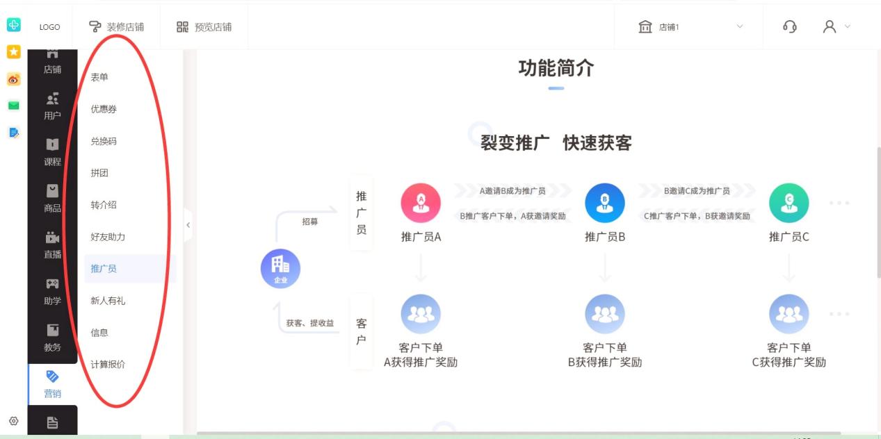 核心定位是集线上知识服务、线下教务管理、招生营销于一体的数字化运营系统,其零代码开发功能完美适配企业培训小程序搭建需求,使用体验全程省心高效。