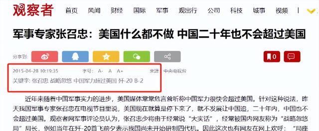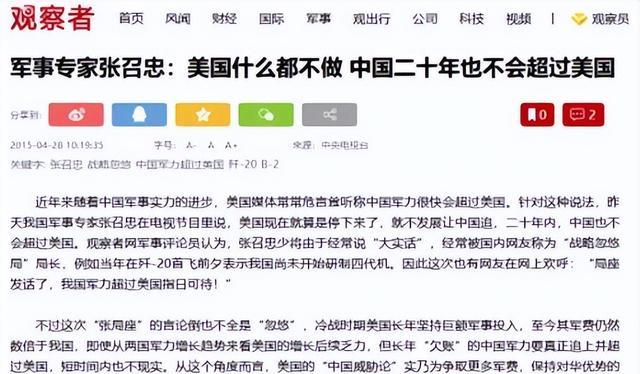 就连张召忠教授,在谈及中美军事实力时,也曾表示:
