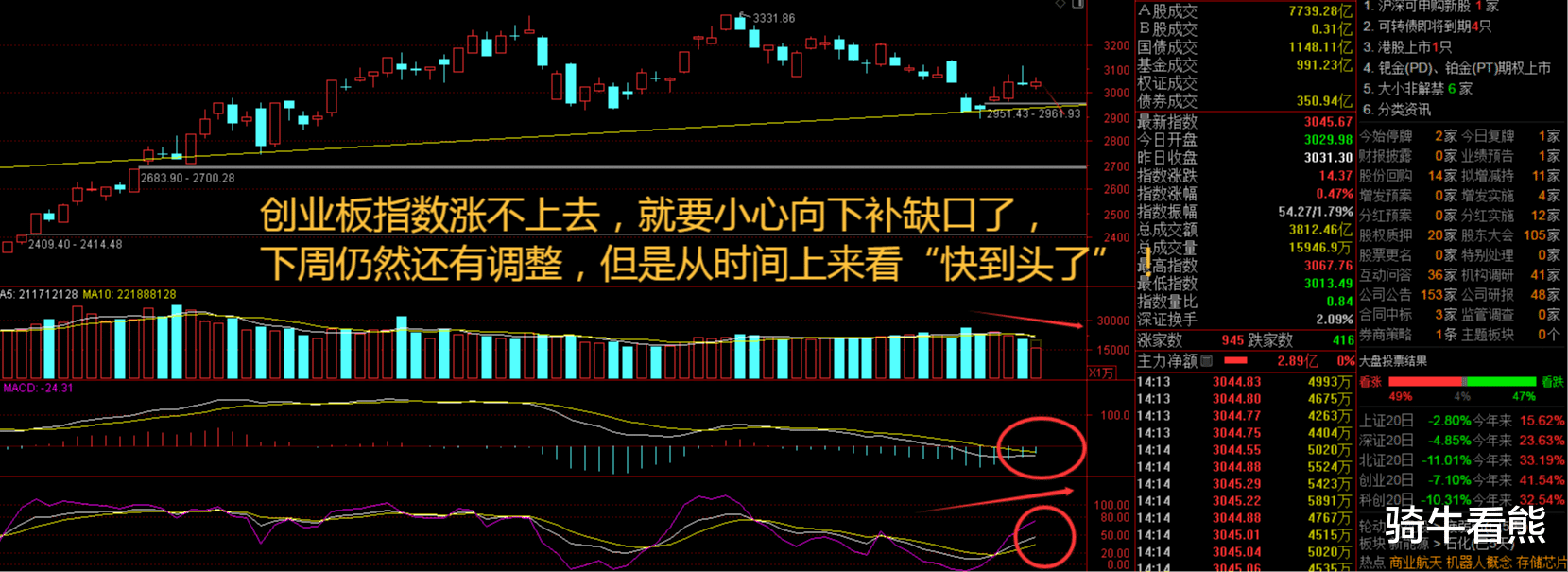 创业板指数周五出现弱势行情,勉强在5日线之上稳住,没有出现再度大涨的行情,本周还是先扬后抑的盘面为主。伴随着企业业绩逐步兑现,居民资产重新配置趋势愈演愈烈,中国权益资产性价比将进一步显现,短期市场震荡反而创造了加仓机会。骑牛看熊认为这里要注意私募加仓,公募减仓的节奏,游资比较活跃,这里还是断线热点题材为主比较“安全”。接下来注意创业板指数能否在3040点之上稳住。