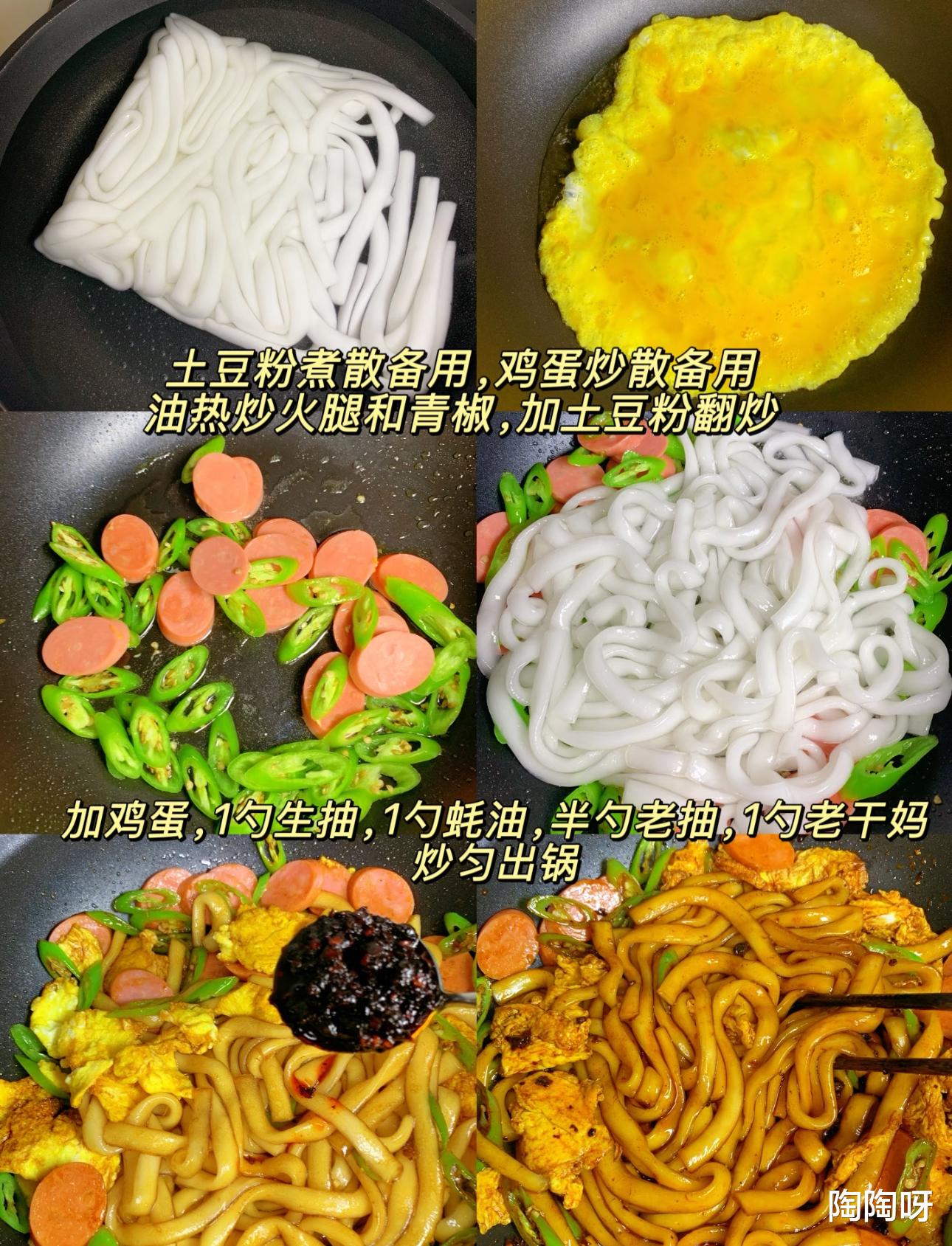 今天给大家分享一个充满烟火气的快手菜——鸡蛋火腿肠炒土豆粉。