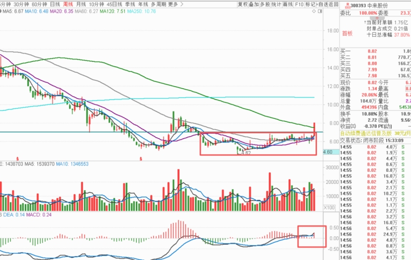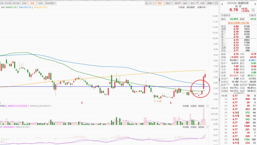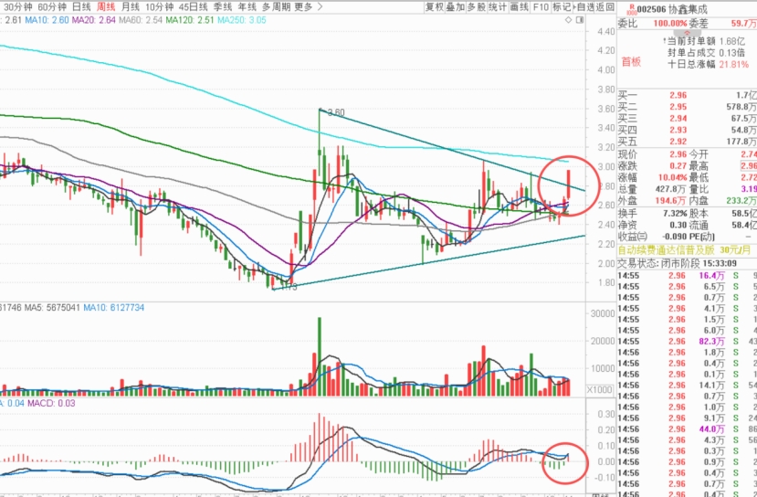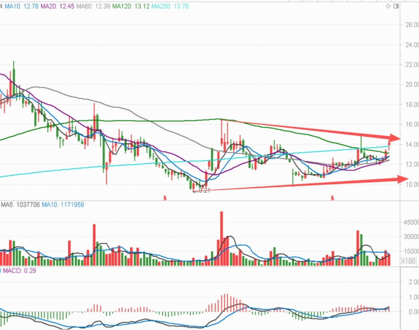 技术上看,股价目前处于底部区域,周线上看刚好突破250周均线的压制,打开了上行的空间。