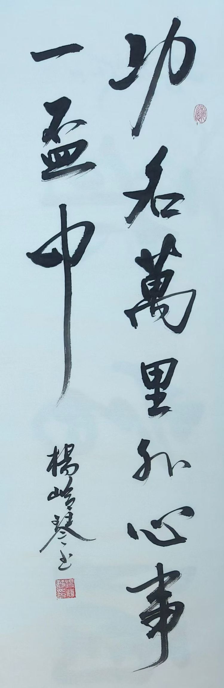 杨岭琴,女,毕业于中国书画函授大学书法专业。现为中国书画家协会会员、中国硬笔书法协会会员、林散之研究院秘书长、江苏省扬子书画学会副会长、南京市楹联家协会副主席、金陵书画院副院长、米南宫书画院会员、塞外书画院副院长。2023年荣获“书画艺术文明传承工作者”荣誉称号。曾荣获“现代名家”组织的“当代优秀书画家”书画评选大赛三等奖,作品被故宫博物院及阿盟大使馆收藏,业余时间笔耕不辍,善于学习,努力进取,如今已形成清秀、俊逸、流畅的书法风格。