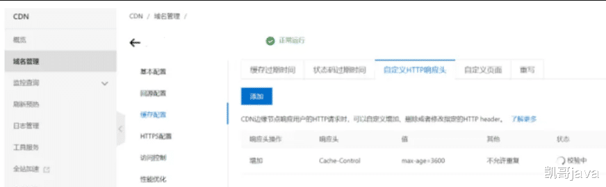 在互联网应用中,因为 CDN 涉及多地域多节点组网,前期投入成本较高,更多的中小型软件公司通常会选择阿里云、腾讯云等大厂提供的 CDN 服务,通过按需付费的方式降低硬件成本。而这些服务商又会为 CDN 赋予额外的能力,比如阿里云、腾讯云 CDN 除了缓存文件之外,还提供了管理后台能为响应赋予额外的响应头。如下所示在阿里云 CDN 后台,就额外设置了 Cache-Control 响应头代表缓存有效期为 1 小时。这里我们额外提一下 Expires 与的 Cache-Control 的区别,Expires 是指定具体某个时间点缓存到期,而 Cache-Control 则代表缓存的有效期是多长时间。Expires 设置时间,Cache-Control 设置时长,根据业务场景不同可以使用不同的响应头。