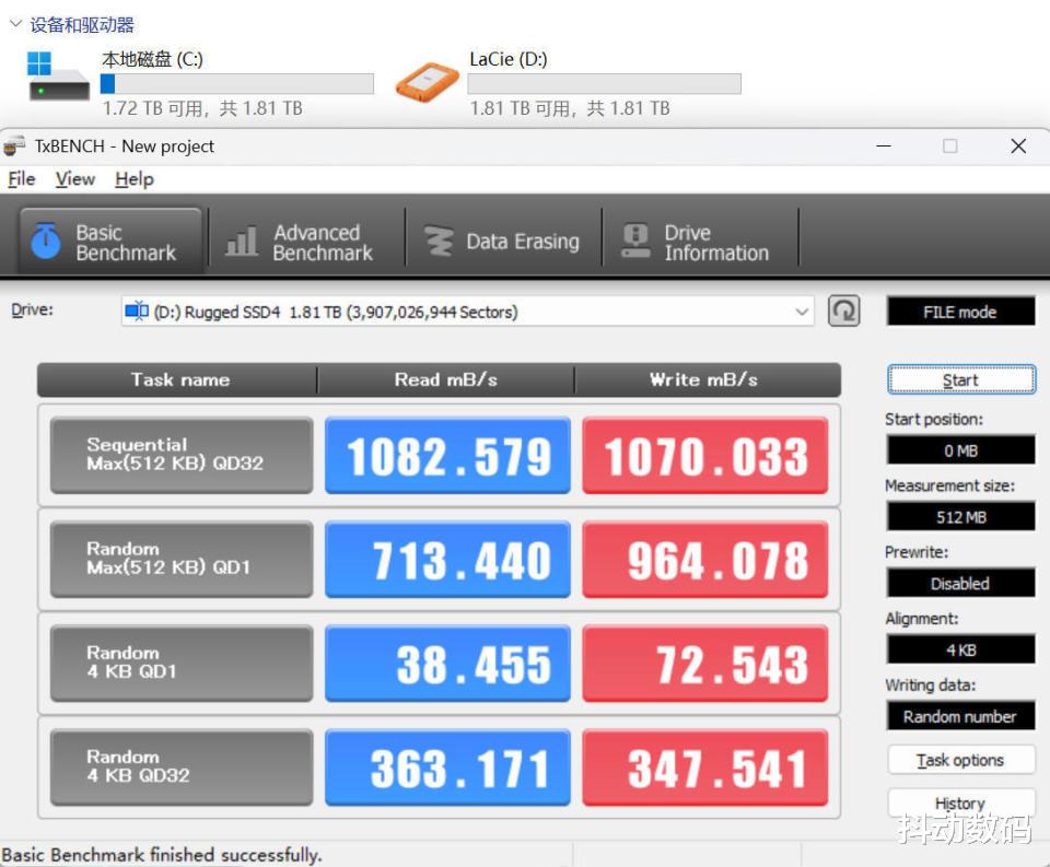读写表现方面,雷孜LaCie Rugged SSD4金刚钻Plus搭载USB 40Gbps接口,实测顺序读取速度可达4000MB/s以上,写入速度稳定在3800MB/s左右,无论是传输数十GB的高清视频素材,还是批量拷贝零散办公文件,都能快速完成,全程无卡顿,使用期间也没出现掉速的情况。大幅提升了工作效率,完美适配专业创作者的高速读写需求。