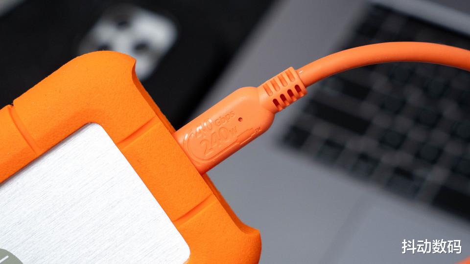 附带的橙色数据线两端有标注40Gbps与240W字样设计,这也表明这根线支持高速读写数据传输。