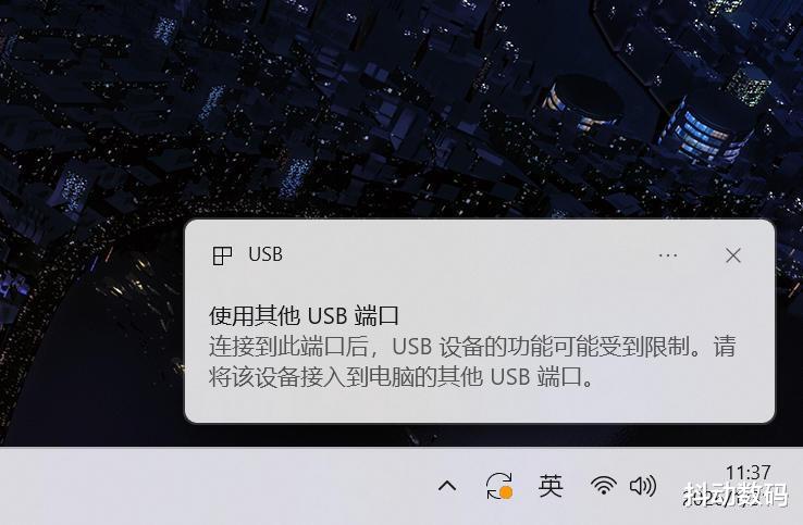 使用方面,这款雷孜LaCie Rugged SSD4金刚钻Plus是支持USB 4接口的。但是它也一样向下兼容,但是可以注意到你如果插错接口的话,目前win11系统是会提示你该设备有USB 4的高速接口的,更换接口可以实现更高的读写表现的。