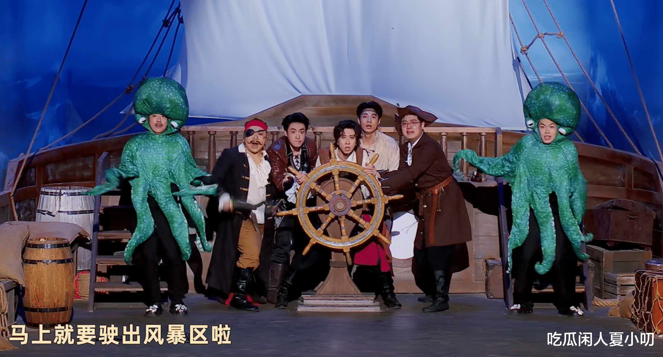 《与神同行》是在海上遭遇风暴,蒋易已经疲惫不堪,孙天宇鼓励他打起精神,结果遇到了死神,随后又出现了各种奇怪的人物——船长,海盗,章鱼。
