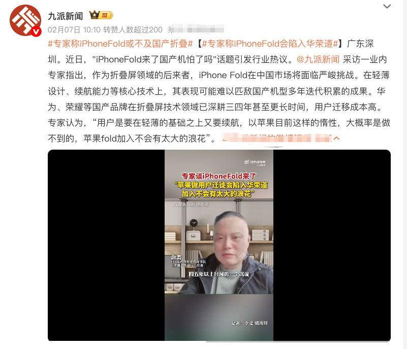 专家指出,苹果在中国折叠屏市场将面临严峻挑战,其表现可能难以匹敌国产机型多年迭代积累的成果。