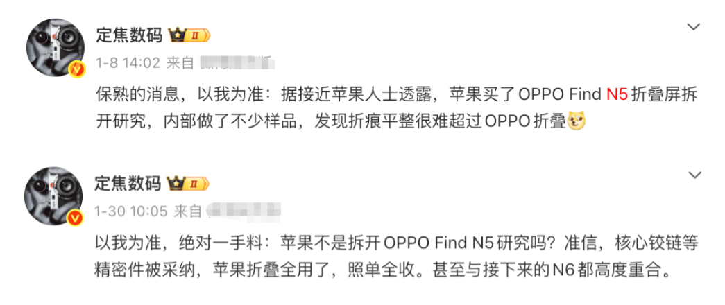 苹果在折叠屏技术上的追赶姿态尤为明显。据爆料,苹果曾拆解OPPO Find N5进行研究,结果令苹果工程师发现难以超越OPPO的折痕平整度。更耐人寻味的是,据说苹果决定对OPPO供应链核心铰链等精密件进行“照单全收”,部分核心技术与即将到来的OPPO Find N6高度重合。