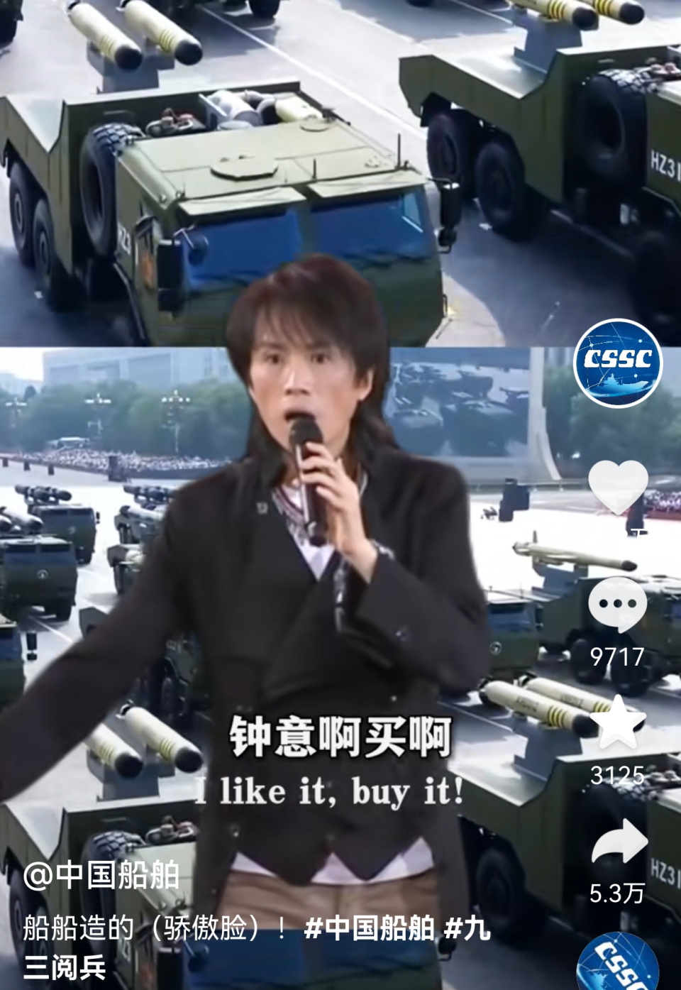 子华神之所以深受大家追捧,不只在于他在影视行业上的杰出成就,更在于他那份真挚无比的赤子之心,甚至一度成为爱国艺人的代名词。九三阅兵后官媒曾发布过一段经典视频,视频背景是阅兵现场各种威风凛凛的海上作战装备,搭配一段黄子华“钟意啊买啊买啊”的经典动图,可谓妙趣横生,又霸气十足,惹得一众网友纷纷点赞,有的网友更是直呼“上链接!”。