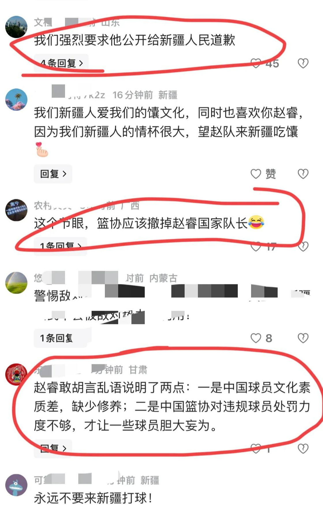 虽然赵睿紧忙删除了动态,也发表了自己的道歉,但是很显然,球迷并不买账。有球迷认为赵睿代表的并不是个人。他是从广东到新疆,再到北京首钢男篮,新疆这片土地怎么着也培养了赵睿几年的时间。最起码在薪资方面并没有亏待赵睿,而是赵睿由于身体伤病的原因。在新疆男篮打了极少的比赛。对于这样的事情。新疆球迷也并没有过多的苛责。但是面对这样的事情,赵睿本人却很敏感。