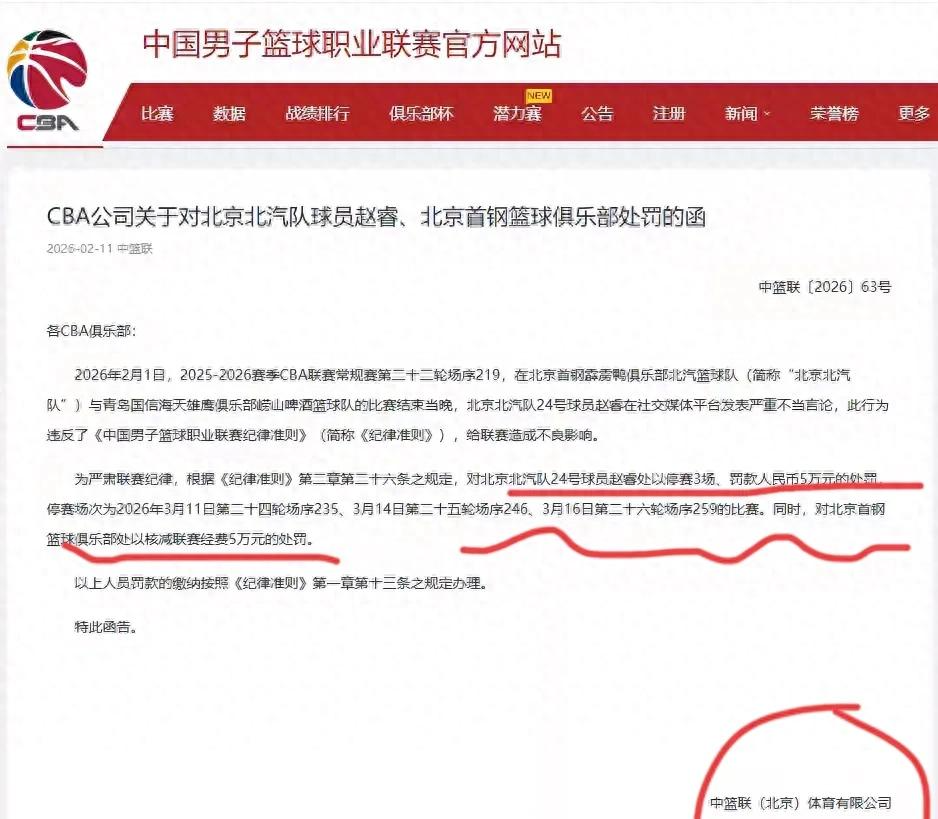 赵睿的罚单终于来了,CBA在北京时间2月11日晚上对赵睿的处罚结果终于公布,最终的处罚结果是赵睿禁赛三场,赵睿个人罚款5万,而北京首钢男篮连带责任也罚款5万,总共对于这件事情的处理就是赵睿个人禁赛3场,总共罚款10万元。