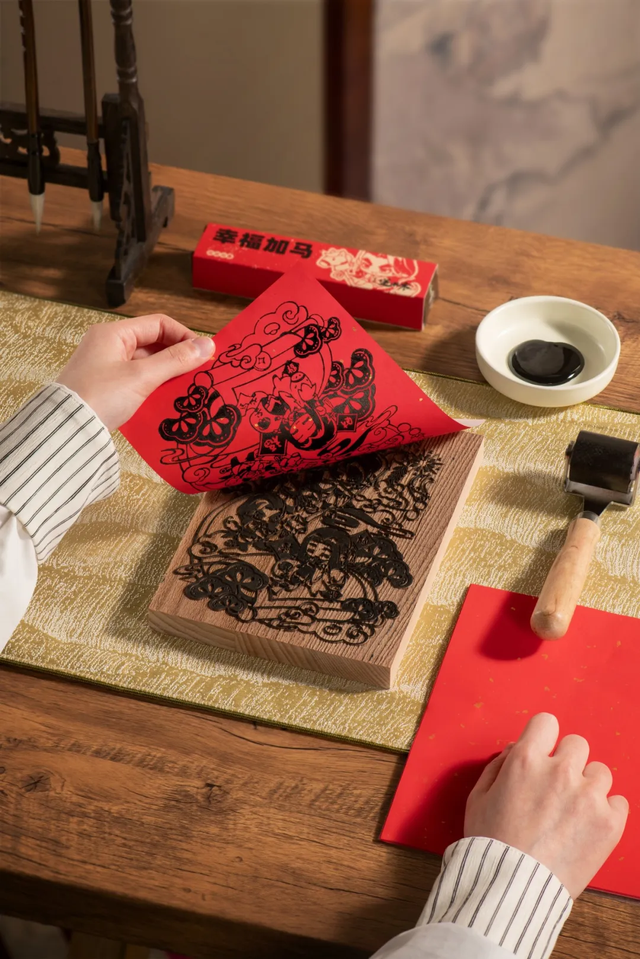 更特别的是,《逆水寒》的非遗新春礼盒不仅可以用来展示,还可以动手玩——为了让玩家们亲身感受非遗的魅力,游戏官方专程为礼盒配置了非遗版画套装,内含中国红福纸、版画木板、全套拓印颜料和装备、木质相框和非遗收藏证书,玩家们可以自己拓印、装裱非遗年画,并且将这些年华送给亲友,传递福气和年味。