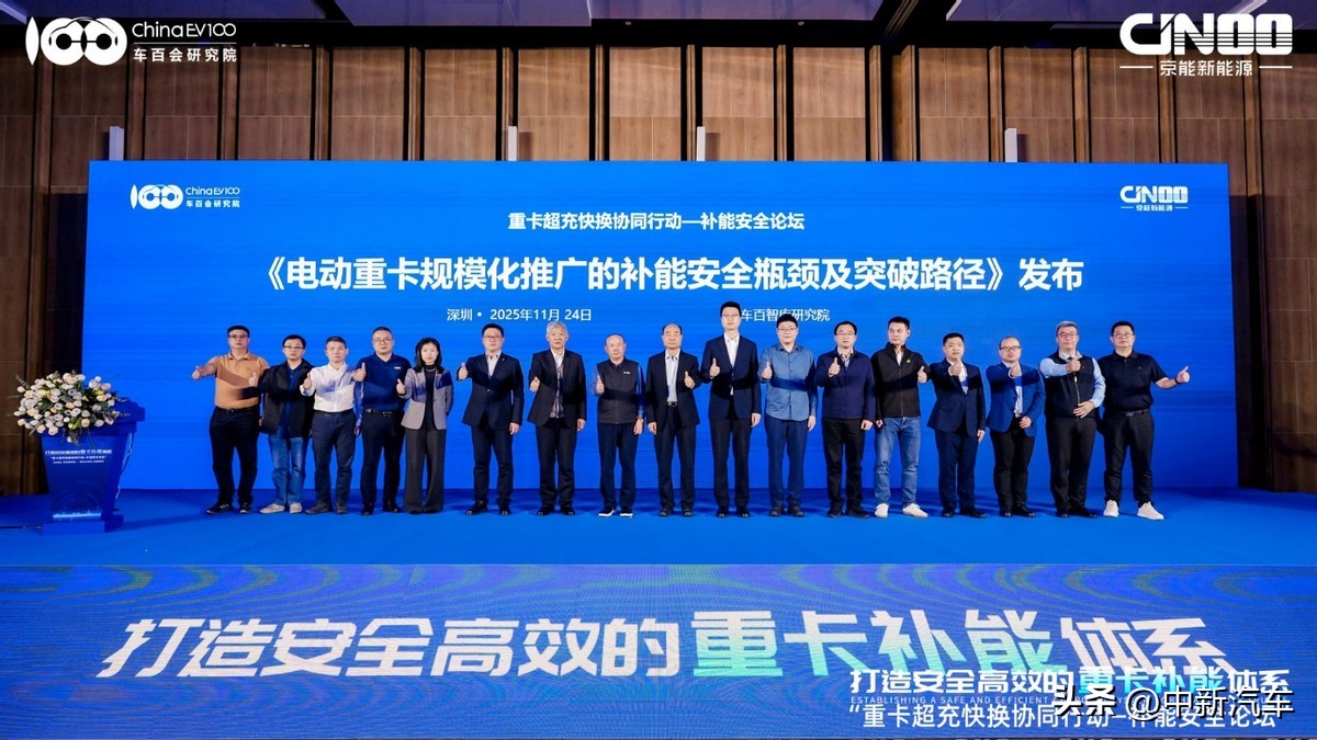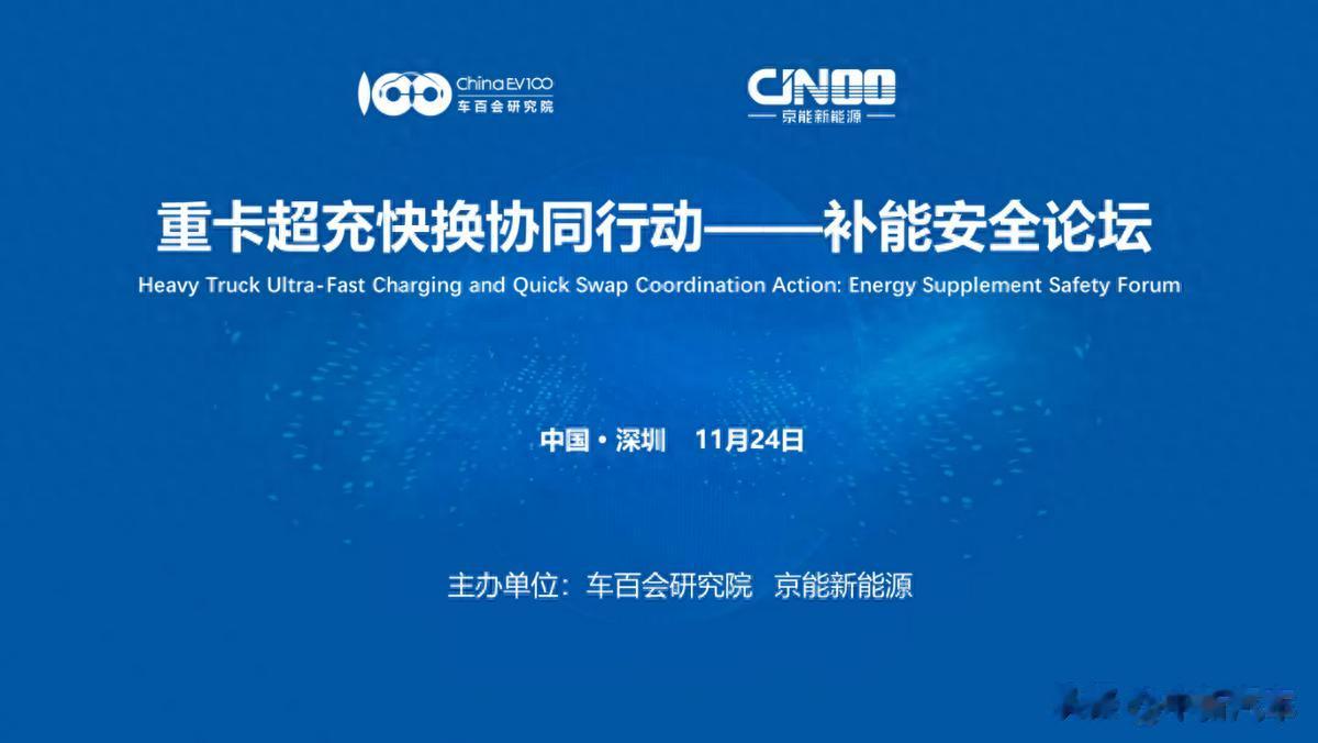 2025年11月24日,由车百会研究院与京能新能源联合主办的“重卡超充快换协同行动——补能安全论坛”在深圳成功举行。论坛以“打造安全高效的重卡补能体系”为主题,汇聚了来自整车、电池、充电设备、运营平台、物流等领域的专家与企业代表,围绕电动重卡补能安全面临的挑战与突破路径展开深度交流,旨在聚焦充电与换电安全、电池技术、设备创新、车桩协同、数据安全等核心议题,推动形成全行业共识,共建安全、高效、可持续的重卡补能生态。同时,论坛上正式发布了《电动重卡规模化推广的补能安全瓶颈及突破路径》报告。
