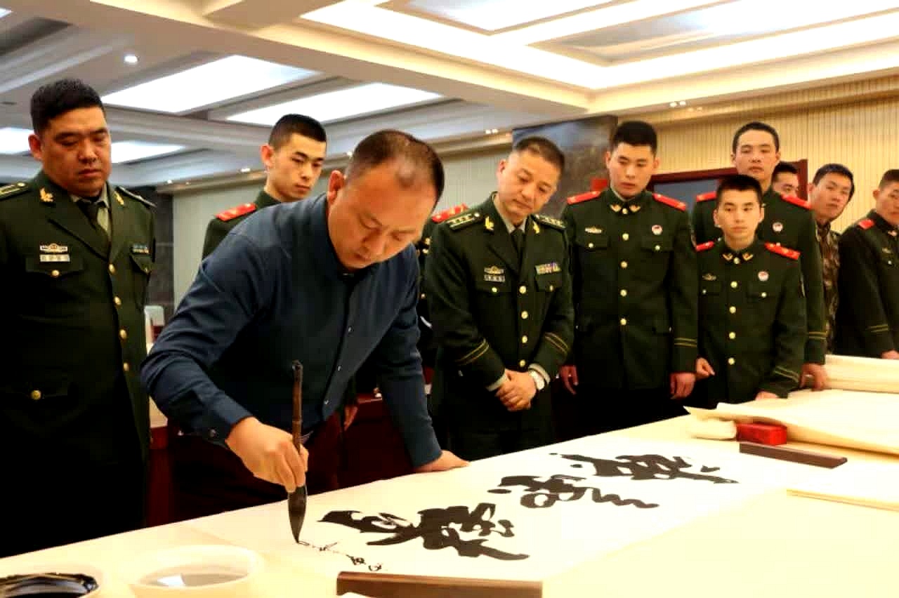 著名书法家刘俊走进警营慰问时拍摄