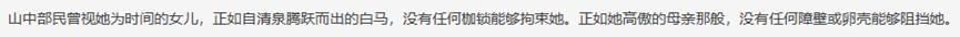 她的灵魂被分为三份,一份附着在随行战车上埋入黄土,一份被囚禁于虚假之月上,一份闲游世间在世隐居。