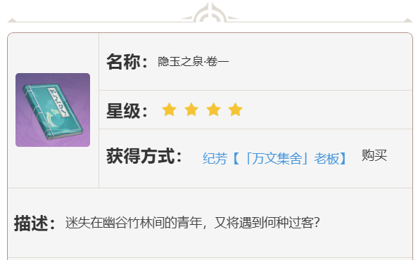就这样,随着故事慢慢推进,旅行者去了一个又一个国家,在进入至冬的临门一脚前,5.2版本,在璃月港万文集舍的老板纪芳那里,突然冷不防的又塞了本新书。