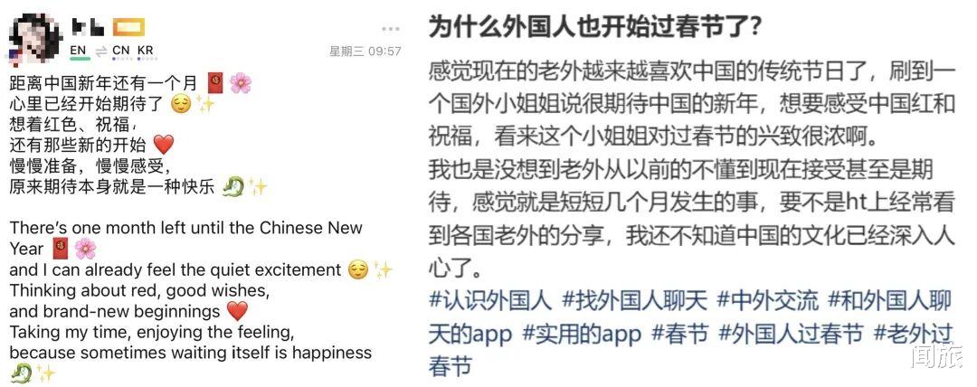 一位在HelloTalk上学习中文的美国网友就坦言:“我看到很多中国年轻人和我们一样爱喝咖啡、追剧、吐槽工作,但也保持着独特的家庭观念和生活仪式感——这让我很想亲自去看看。”