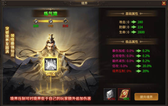 1. 境界等级存在压制,可对境界低于自己的玩家额外追加伤害