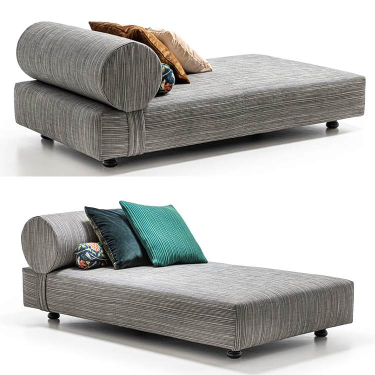 Moroso莫罗索 织物日间床。它的名字旨在唤起人们对欢乐氛围的想象,沙发结合了宽大的轮廓,采用摩洛哥风格条纹面料