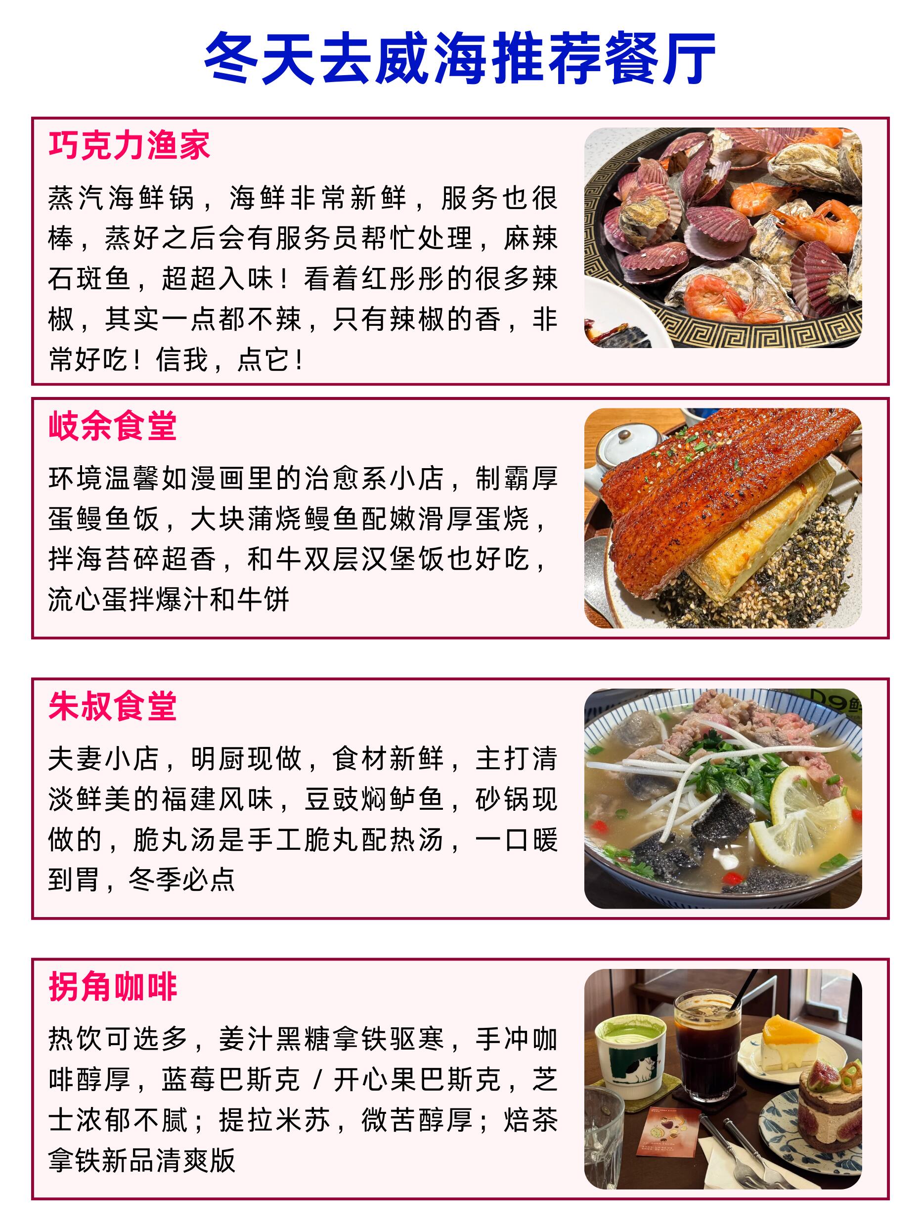 4️⃣ 冬季日落较早,海边气温傍晚下降明显,建议合理规划户外活动时间,日落前后及时增添衣物。如前往成山头、那香海等距离市区较远的景点,建议提前了解交通路况与天气变化~🐾🐾
