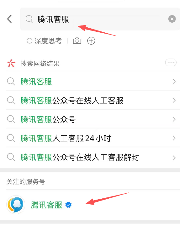 首先打开微信,在搜索栏里面搜索腾讯客服。