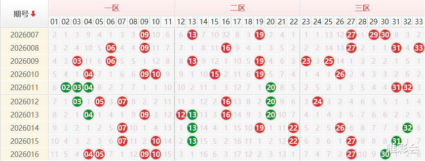 三区:上期该区开出2枚号码27 30,近期该区出号热度有所上升,本期注意防守该区出号即可,推荐号码:26 28 31 32