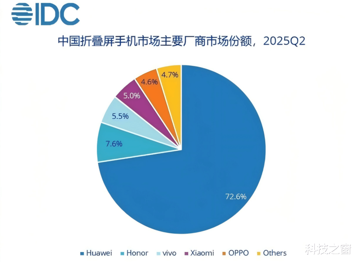 随着折叠屏技术的快速发展和用户需求的变化,越来越多的消费者将折叠屏作为换机的首选,在国内折叠屏市场中,就有一个被广泛认可的说法,那就是:折叠屏只有华为和其他。这一论断并非空穴来风,因为源自IDC的2025年第二季度中国折叠屏手机市场报告,华为以72.6%的份额占据绝对主导地位,远超其他厂商,这源于华为在折叠技术、系统生态和用户体验上的长期深耕与持续引领。