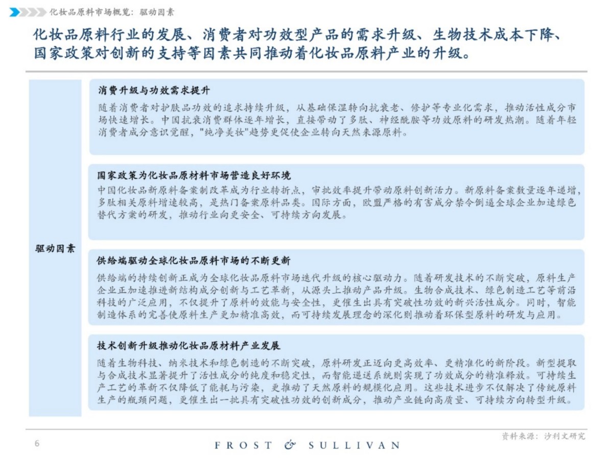 未来,生物合成技术、AI 配方设计、精准护肤需求将持续驱动行业升级,国货品牌在原料创新与国际化布局上的突破,有望进一步提升中国在全球化妆品原料市场的话语权。