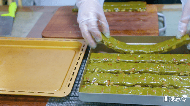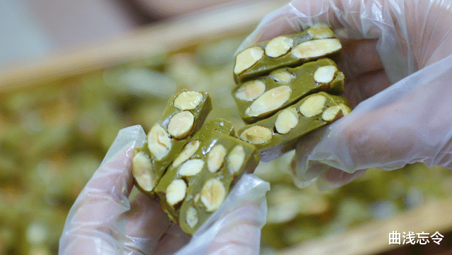 粘牙主要是糖液熬制的温度和状态不够,糖没有达到理想硬度,操作过程中的火力不稳、搅拌不足、温度没掌握好都可能是是粘液牙的原因,随时检测,放点糖液在冷水中,冷后咬断是酥脆的即可。因为这个配方要想保持抹茶颜色,温度不能太高,那么火力温度和搅拌充分要更注意。