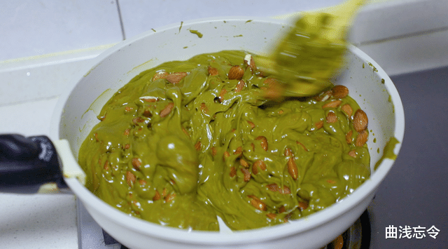 变色是抹茶粉温度过高时会出现的情况,所以抹茶不要一开始加入,后期再加入,尽量缩短在高温时的加热时间。