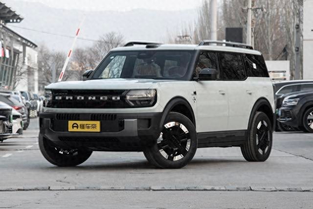外观设计方面,咱们先看前脸,特吸睛的就是这个可点亮的BRONCO品牌标识,白天是很有质感的金属徽章,晚上一亮起来就是专属的身份标志,在车流里一眼就能认出来。头灯组也做了优化调整,把传统横向灯带升级成了双层布局,上层是日间行车灯,下层是远近光一体灯组,点亮之后光带连贯,科技感和辨识度直接拉满。再来看车身侧面,亮点也特别多,无喷漆材质的轮眉野性十足,就算越野的时候剐蹭到也不用心疼,特别适合硬派用车的场景,隐藏式门把手搭配平直车顶,既降低了风阻,又保住了车内的头部空间,车身线条简洁利落还很有运动感。19英寸多辐式铝合金轮毂,力量感和精致感都有,再配上高扁平比的越野轮胎,跑复杂路况也更踏实,车身长达5025mm,轴距更是有2950mm,整车比例协调,车内驾乘空间也特别宽敞。再说车尾,就是标准的硬派越野配置,外挂式全尺寸备胎加上侧开式尾门,既是越野标志性设计,又特别实用,在狭窄空间里也能轻松开门,拿取后备箱东西很方便。竖向排列的尾灯和车头大灯相互呼应,设计风格统一,备胎罩上大大的BRONCO标识,时刻都在彰显它纯正的越野血统。车身配色也很丰富,有烈焰橙、火山黑、雪峰白、喀纳斯蓝等多款时尚颜色,能满足不同人的审美,烈焰橙个性张扬,喀纳斯蓝清新雅致,城市通勤、户外露营都特别合适。