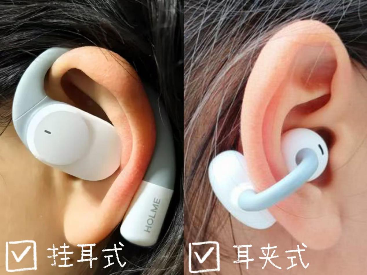 开放式耳机主要分为挂耳式和耳夹式两种类型:挂耳式通过柔性耳挂绕在耳廓上,佩戴稳固,适合运动,音质表现通常更好。