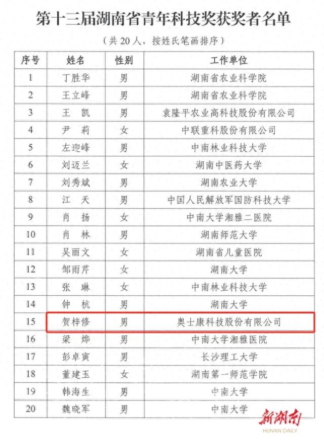 为引导激励湖南省优秀青年科技人才脱颖而出,持续激发青年科技人才创新创造活力,加快实现“三高四新” 美好蓝图,经省委、省政府批准,省科协组织开展了第十三届湖南省青年科技奖评选表彰工作。经“两审三公示”,决定授予这20名同志第十三届湖南省青年科技奖。