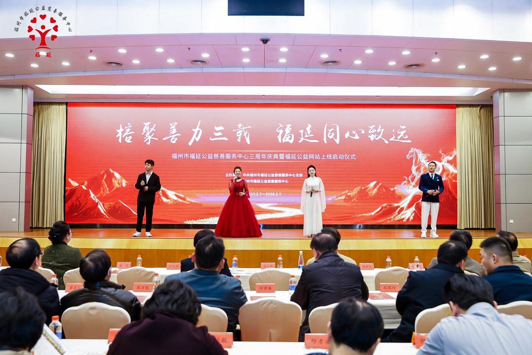 2月7日下午,福州市福延公益慈善服务中心成立三周年庆典暨网站上线仪式在福建会堂六楼国际厅隆重举行。本次活动以“榕聚善力三载、福延同心致远”为主题,汇聚省市相关部门领导、爱心企业家、社会各界爱心人士及福延公益志愿者代表,共同总结三年公益实践成果、表彰先进典型、启动数字化公益新平台,擘画新时代公益事业高质量发展新蓝图。